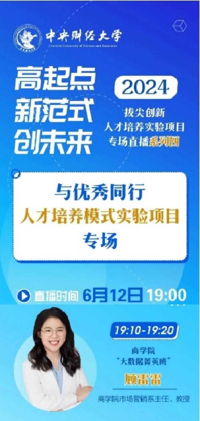 The enrollment publicity working group of the Business School actively promotes all undergraduate programs of the Business School through multiple channels. Professor Lin Song, dean of the Business School, participated in the live broadcast titled “The Dean Leads You to Choose a Major” organized by the Enrollment Office, and accepted an exclusive interview with “Business Management Review”. Professor ZhouWeizhong, professor MiaoYuexin,professorZhuFeiand professor Yan Nina respectively participated in the "Teachers Take You to Understand Majors in Seconds" column recorded by the Enrollment Office. The Enrollment Office of the Business School and the WeChat Official Account of CUFE Business School promoted the "Big Data Elite Class” through several posts and live broadcasts, and publicized the excellent achievements of the Business School’s students in national competitions, in order to further enhance the visibility and professional influence of the Business School.