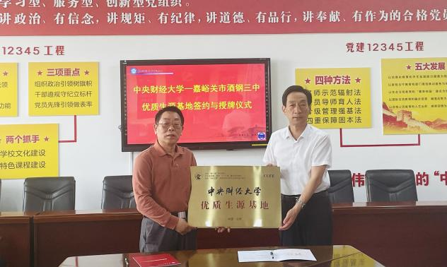 From May 21 to 24, 2024, LiYuexin, leader of the Gansu Provincial Enrollment Publicity Group of CUFE and secretary of the Party Committee of the Business School, LuJizhou, a member of the Gansu Provincial Enrollment Publicity Group of CUFE and an associate professor of the Department of Supply Chain and Operations Management of the Business School, and LiZhengchen, a member of the Gansu Provincial Enrollment Publicity Group of CUFE and an undergraduate counselor of theBusiness School went toJiayuguanNo. 1 High School,JiayuguanJiugangNo. 3 High School,ZhangyeNo. 2 High School, and WuweiNo. 1 High School in Gansu province successively to conduct undergraduate enrollment promotion work in Gansu Province. The Gansu Provincial Enrollment Publicity Working Group held discussions and exchanges with the leaders and teacher representatives of the four high schools, gained a deeper understanding of the history, situation and development condition of CUFE, and introduced the basic information of CUFE and the enrollment condition in Gansu province to the leaders and teacher representatives of CUFE. The two sides had sufficient discussions and exchanges on strengthening cooperation, improving the effectiveness of enrollment publicity and jointly building a bridge between basic education and higher education. After the discussions, CUFE signed the “Student Source Base Construction Agreement” withJiayuguanNo.1 High School,JiayuguanJiugangNo.3 High School,ZhangyeNo.2 High School andWuweiNo.1 High School, and held the awarding ceremony of “CUFE High-quality Student Source Base”. Among them,ZhangyeNo.2 High School engaged LuJizhou, an associate professor of the CUFE Business School, as the vice president of technology of ZhangyeNo.2 High School, opening a new chapter of cooperation between universities and high schools.