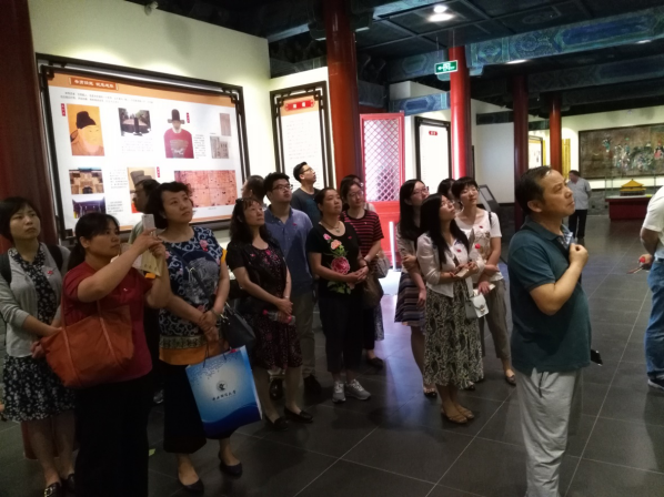 孔庙和国子监博物馆是全国首家推出以讲述官德文化为主题展览的博物馆,于2007年正式对外开放,是“北京市廉政教育基地”和监察部“廉政文化建设基地”。展览从官德思想、官德制度、官德文化三方面展示了中国古代官德思想的起源、发展和演变。以时间为线索,梳理和展示了历代文人士大夫对于廉洁的教化与赞颂。展览既选取了严嵩、和珅、奕劻等贪污墨吏的典型,总结了封建王朝衰亡与官场贪腐奢靡之间的密切联系,又选取了于谦、海瑞等清廉为官的历史人物,弘扬他们无愧于心的廉洁事迹。整个展厅同时采用多种现代技术并融合了3D影像效果,古今结合,相得益彰。老师们全程积极参观展品,认真聆听讲解,并和讲解员进行了积极的提问与沟通。