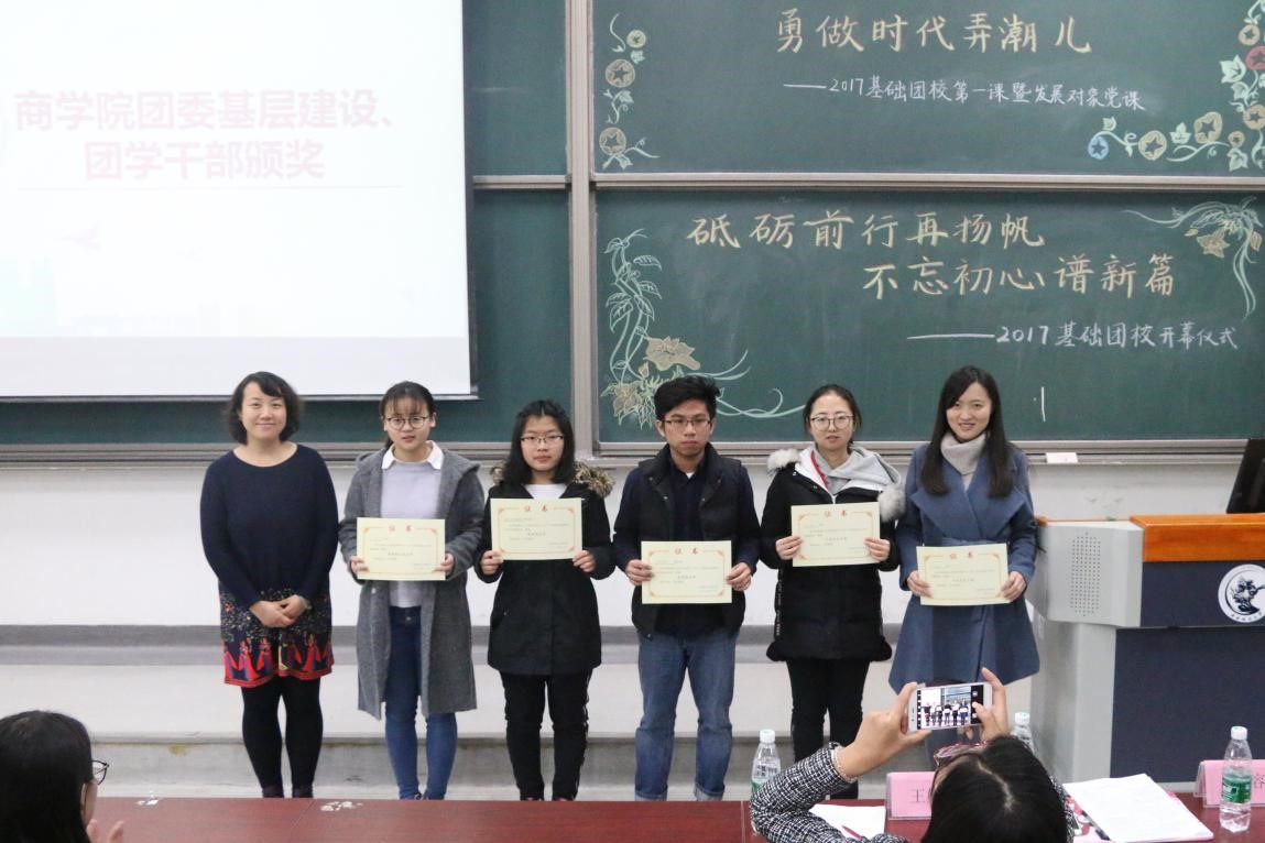随后举行永利23411集团团委学生会新一届主席团、部长团聘任仪式以及基层组织建设优秀单位和个人的表彰仪式。营销15等团支部荣获优秀团支部,营销16等团支部荣获优秀新生团支部,伙安婷等同学荣获永利23411集团十佳学生干部称号。王容老师为获奖支部和同学颁奖。