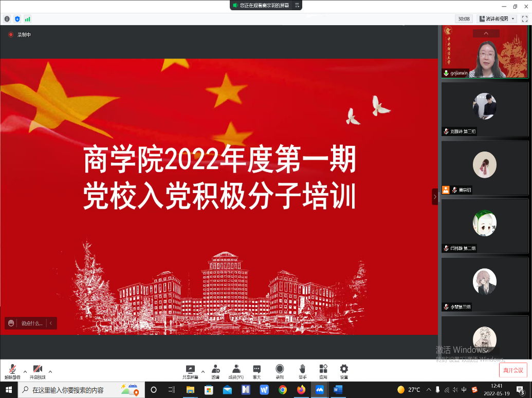 2022年5月19日,永利23411集团党委书记葛建新老师以“端正入党动机”为主题,为学院100余名入党积极分子讲授专题党课。会议由党校班主任窦宗玥老师主持。