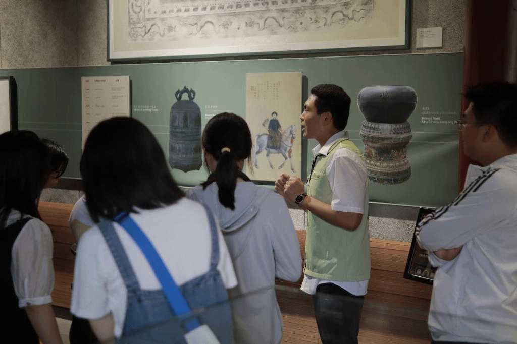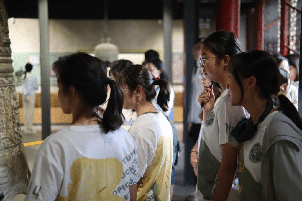 大钟寺古钟博物馆是全国唯一一座以收藏、研究、展示、宣传钟铃文化为主的专题性博物馆,以其独特的钟铃文化吸引着众人。同学们跟随讲解员的脚步,欣赏了明永乐大铁钟、永泰寺铜钟、汇通祠铁钟等珍贵文物。这些古钟不仅见证了历史的变迁,更蕴含着丰富的文化内涵和廉政思想。