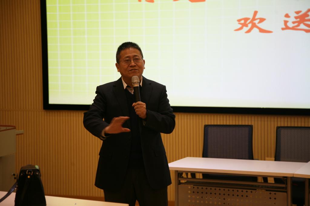 分工会首先为两位老师制作了欢送会PPT。PPT通过图片、视频回顾了两位老师在学院几十年的辛勤教学、桃李天下的丰硕成就,与学院同仁一起共事的点点滴滴,以及同事们的真诚祝福。林光老师、钱振波老师分别发言,感谢学院领导及同仁在工作中的支持和鼓励,感谢与同事们相处的快乐时光。王瑞华院长代表全院向两位学院元老级教工表示衷心感谢,感谢几十年如一日辛勤付出,为学院发展做出巨大的贡献,同时也希望两位老师继续关心关注学院发展,为学院发展发挥余热。葛建新书记委托林嵩副书记转达了对两位老师的祝福,并希望两位老师常回家看看。