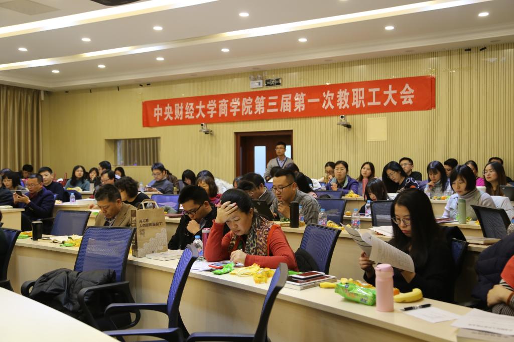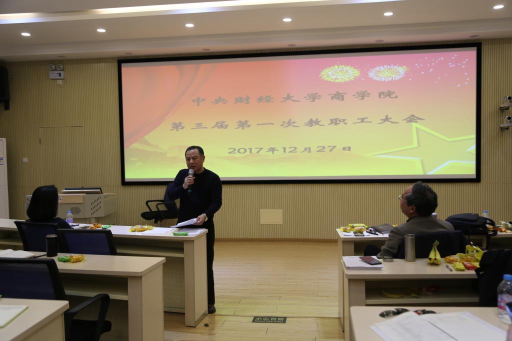 2017年12月27日,永利23411集团在学院校区MBA教育中心阶梯教室召开第三届第一次教职工大会,永利23411集团院长王瑞华教授、党委书记葛建新教授等学院领导出席大会,会议由分工会主席周利国教授主持。