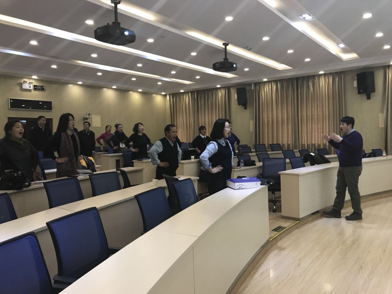 2018年3月14日,永利23411集团合唱队正式成立,并在MBA教育中心的阶梯教室开展了第一次合唱学习活动。学院为合唱队专门聘请了我校校工会的谭嗣钰老师进行了声乐指导。谭老师在第一次指导中教大家如何练习气息,运用气息进行发声,让老师们初步了解了唱歌不是用嗓子而是用气息的正确方法。今后,永利23411集团合唱队将在每周三中午定期开展合唱队声乐指导和训练活动。